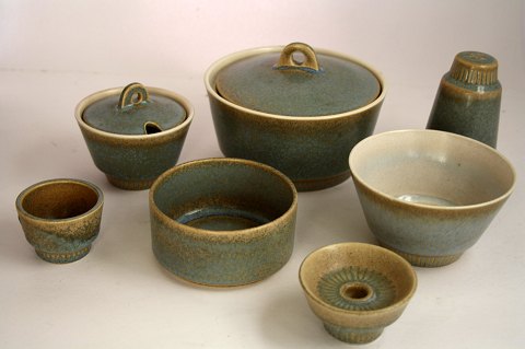 Rørstrand, Blå Koka designet af Hertha Bengtson i 1956. Tekop med underkop. Højde 7 cm. Diameter 9 cm. Pris: SOLGT