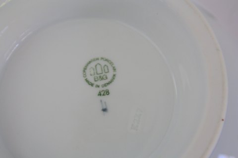 Bing & Grøndahl, Måge med guld. Opsats på lav fod. Nr. 428. II. sortering. Højde 6,5 cm. Diameter 20 cm. Pris: SOLGT