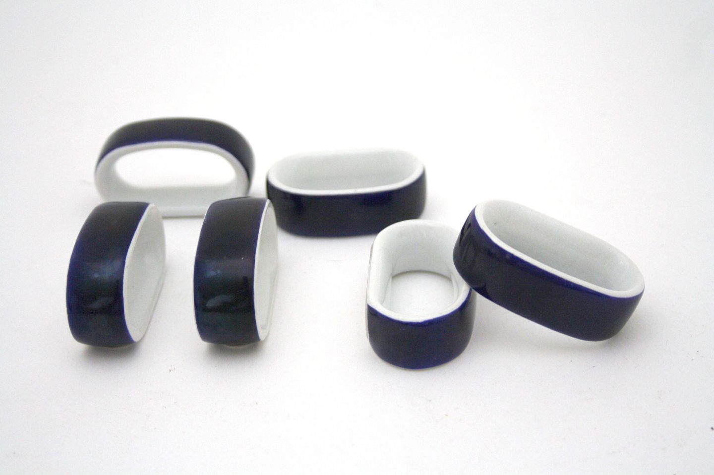 Rørstrand, Blå Koka designet af Hertha Bengtson i 1956. Servietring. Længde 5 cm. Højde 3 cm. Pris: 225 kr. stk. Lager: 6
