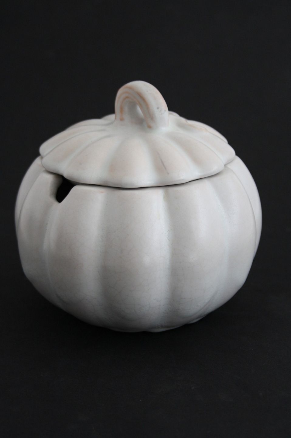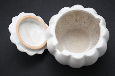 Michael Andersen, Bornholm. Marmeladekrukke i hvid mat glasur. Formnr. 4596. Højde 12 cm. Diameter 12 cm. Flot stand udvendig. Krakeleringer indvendig. Pris: SOLGT