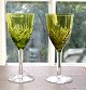 Hvidvin med mørk grøn kumme. Højde 15 cm. Øverste diameter 6,3 cm. Pris: 125 kr. stk. Lager: 6