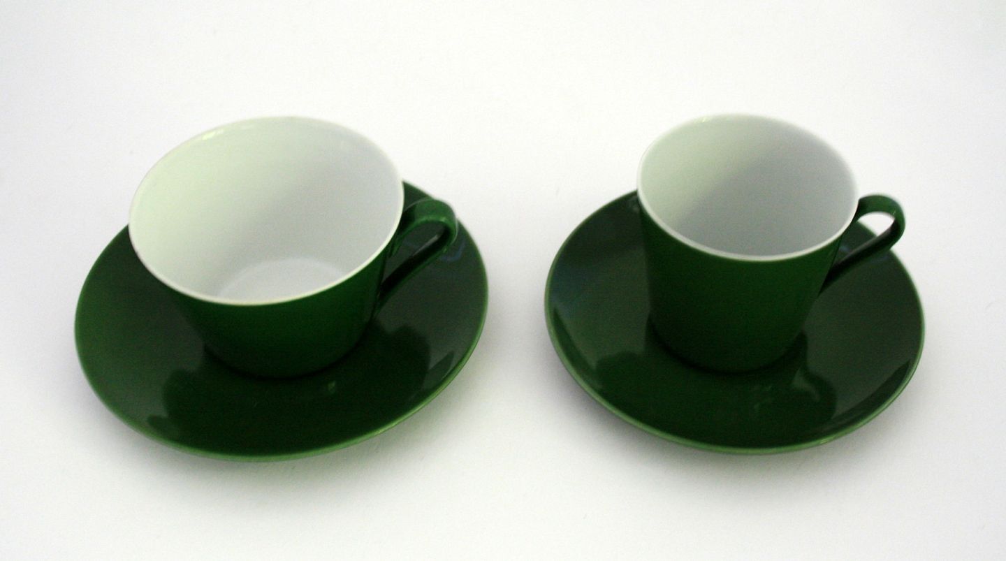 Tekop med underkop. Højde 6 cm. Diameter 9 cm. Pris: 150 kr. stk. Lager: 1