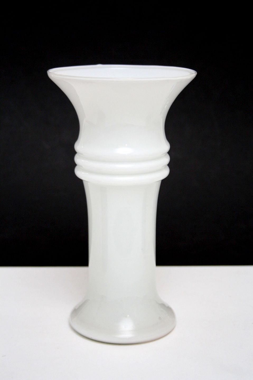 Holmegaard, Opalhvid vase med 3 rigler uden navn, designet af Michel Bang i 1980'erne. Højde 20,5 cm. Øverste diameter 11 cm. Pris: 275 kr. Lager: 3