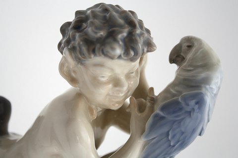 Royal Copenhagen, Faun med blå papegøje. Nr. 742. Højde 17,5 cm. Længde 13 cm. II sortering. Flot stand. Pris: SOLGT