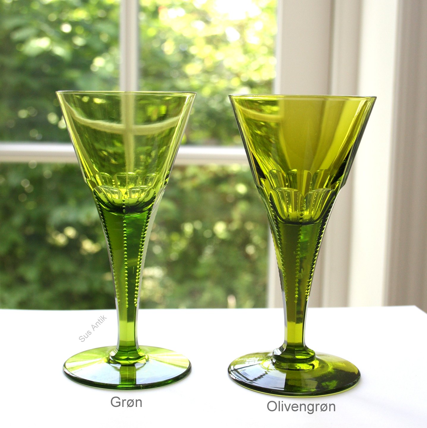Hvidvin (grøn lysere se ekstra foto). Højde 14 cm. Diameter 7,2 cm. Pris: 200 kr. stk. Lager: 3