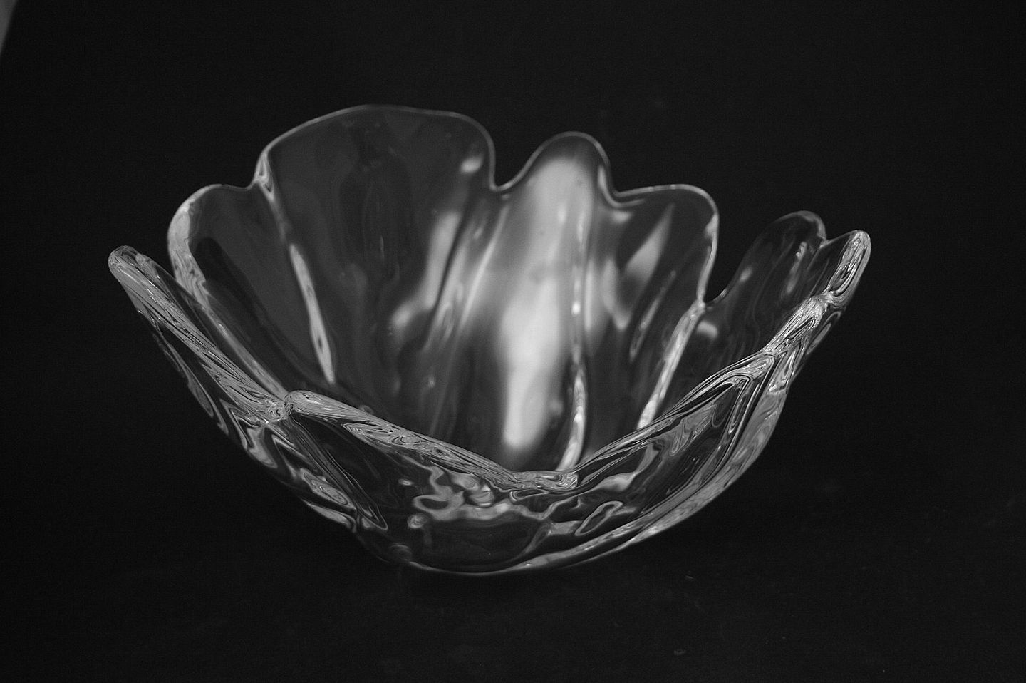 Royal Copenhagen/Holmegaard, Natura asymetrisk bølget skål designet af Ole Kortzau i 1996. Højde 17 cm. Største diameter 29 cm. Pris: SOLGT