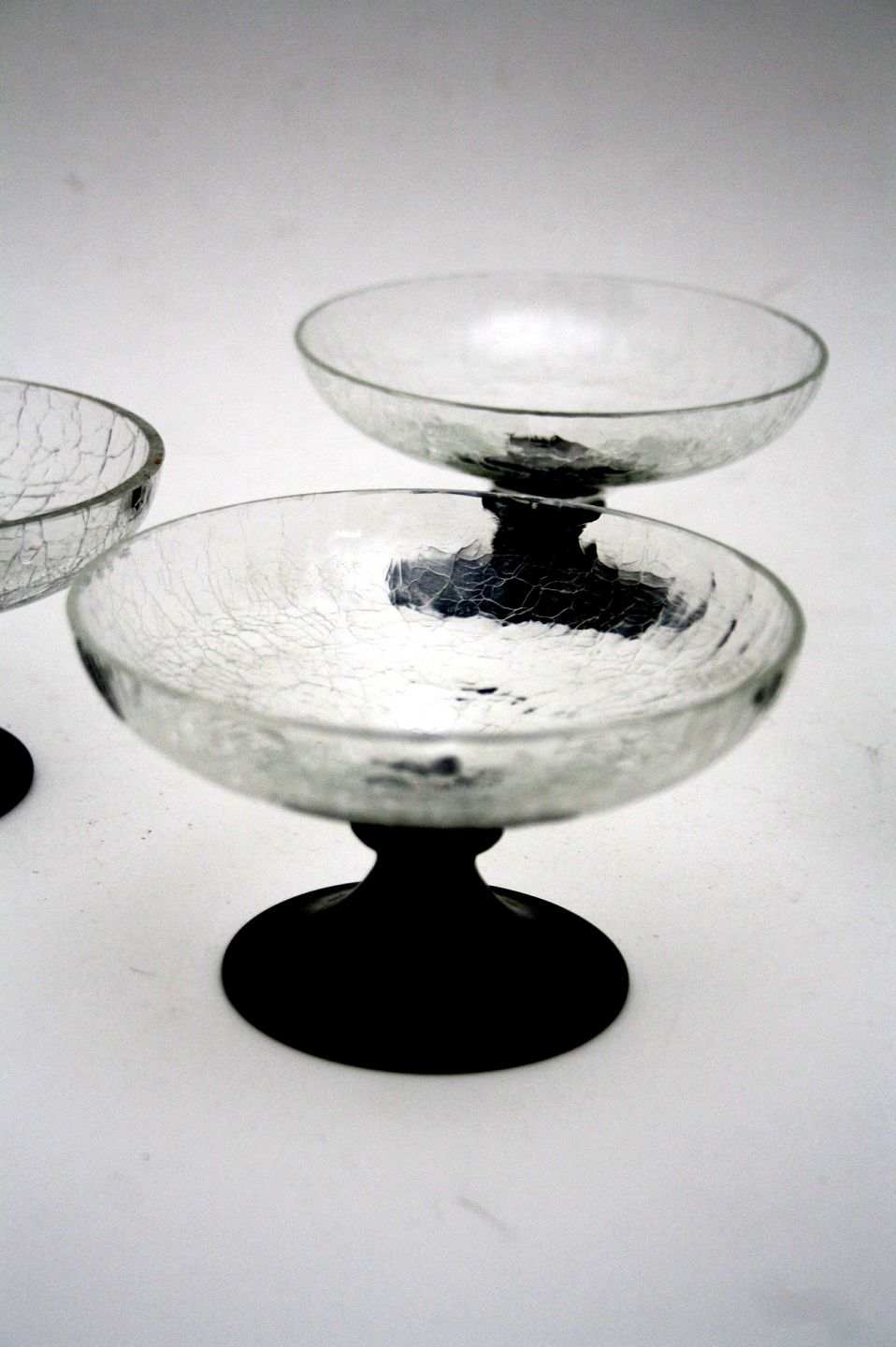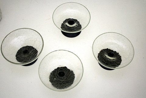 Holmegaard, Craqueleret isglas designet af Jacob E Bang i 1928. Højde 6,5 cm. Diameter 12 cm. Pris: 100 kr. stk. Lager: 3