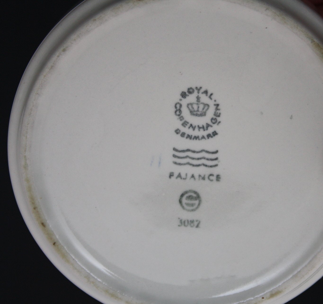 Royal Copenhagen fajance, Blåkant. Designet af Grethe Meyer i 1965. Flaskebakke. Dek.nr. 3082. Højde 2,5 cm. Diameter 9,5 cm. Fin stand. Pris: 75 kr. stk. Lager: 2