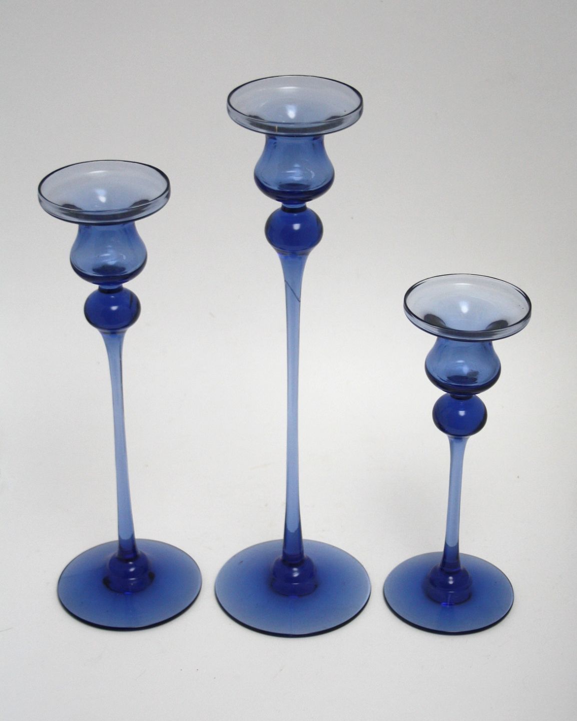 Holmegaard, Casiopeia lysestager i coboltblå glas, designet af Torben Jørgensen i 1984.