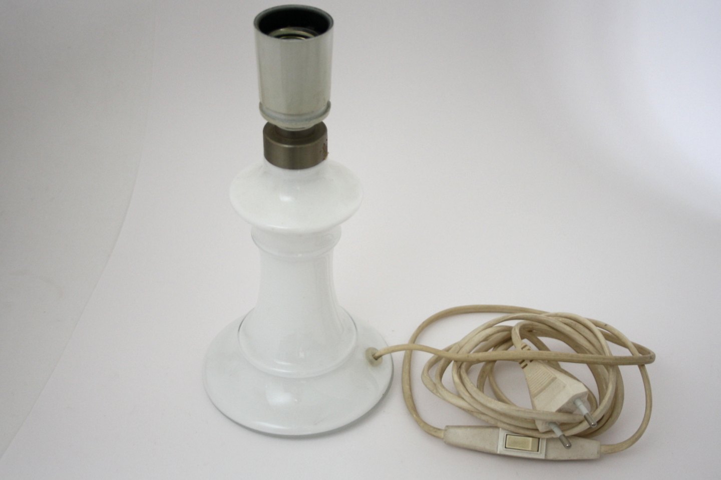 Fyens Glasværk/Holmegaard, Michelle, opalinehvid bordlampe designet af Michael Bang i 191. Højde incl. fatning 24 cm. Pris: SOLGT