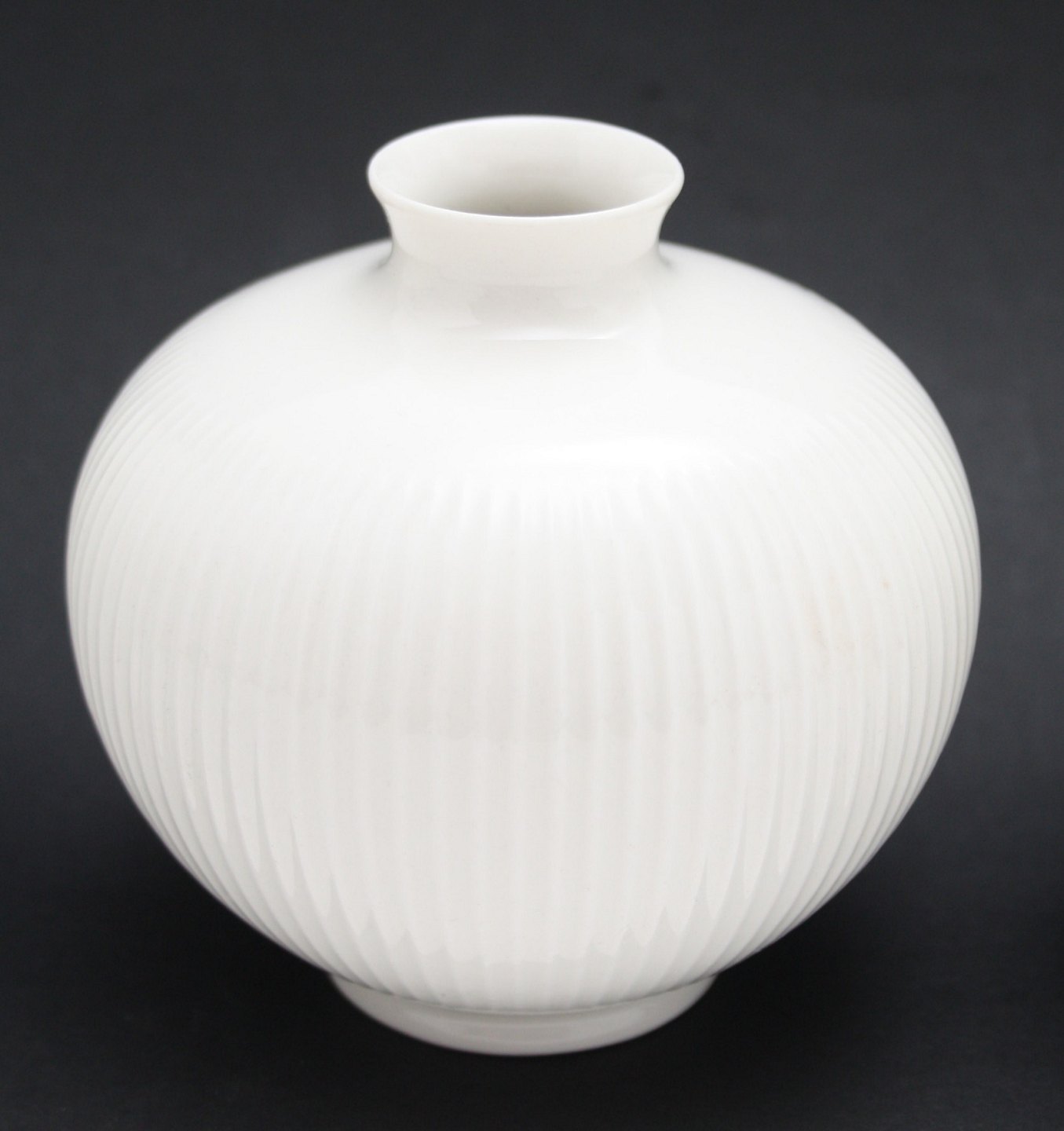 Midten. Buttet vase med riller. Formnr. 4343. Højde 10 cm. Diameter 10 cm. I. sortering. Pris solgt