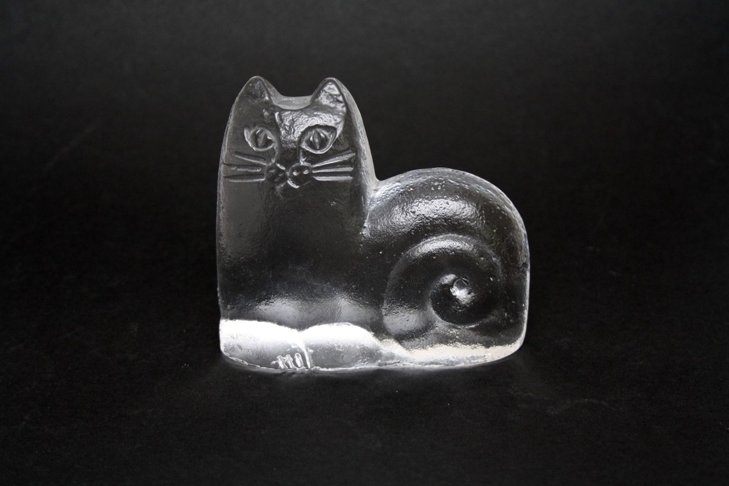 Royal Krona, Sweden, Kat i glas designet af Lisa Larsson. Højde 10 cm. Længde 10,5 cm. Bredde 3 cm. Pris: SOLGT