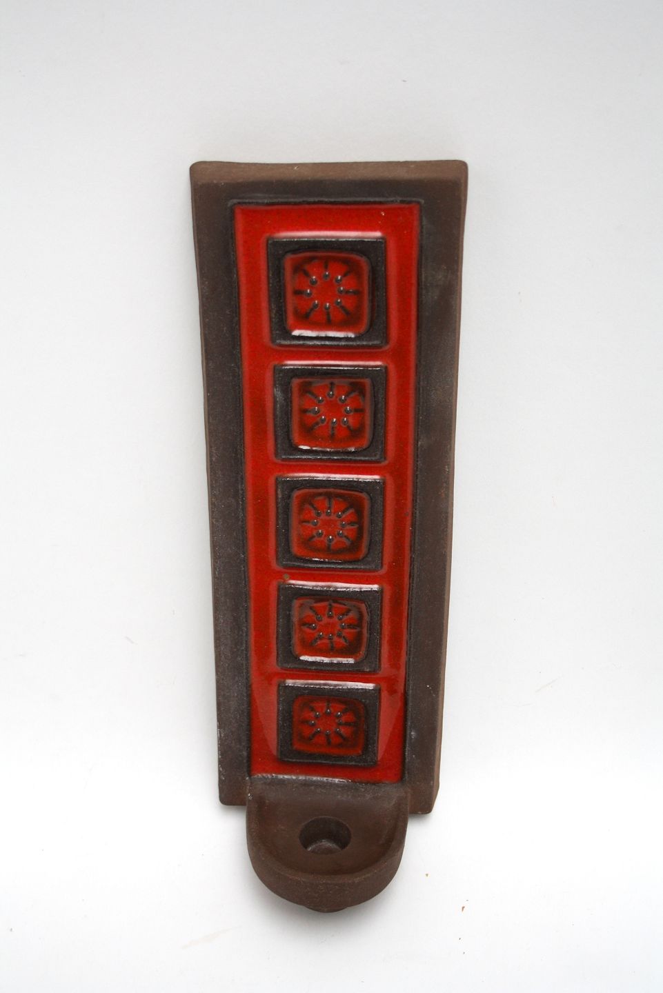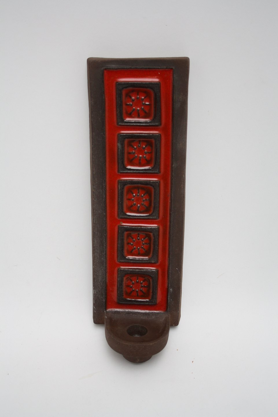 Knabstrup, væglysestage orange relief. Højde 30 cm. Bredde 10,5 cm. Pris: SOLGT
