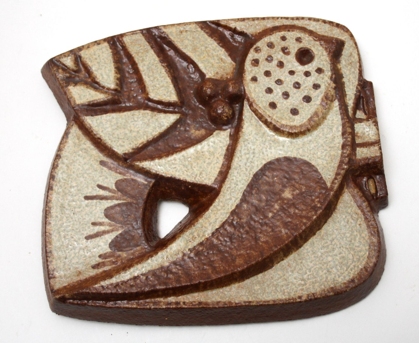 Søholm, Stentøj Relief med fuglemotiv. Designet af Noomi Backhausen i 1975. Formnr. 3539-1. Højde 22 cm. Bredde 21,5 cm. Pris: SOLGT