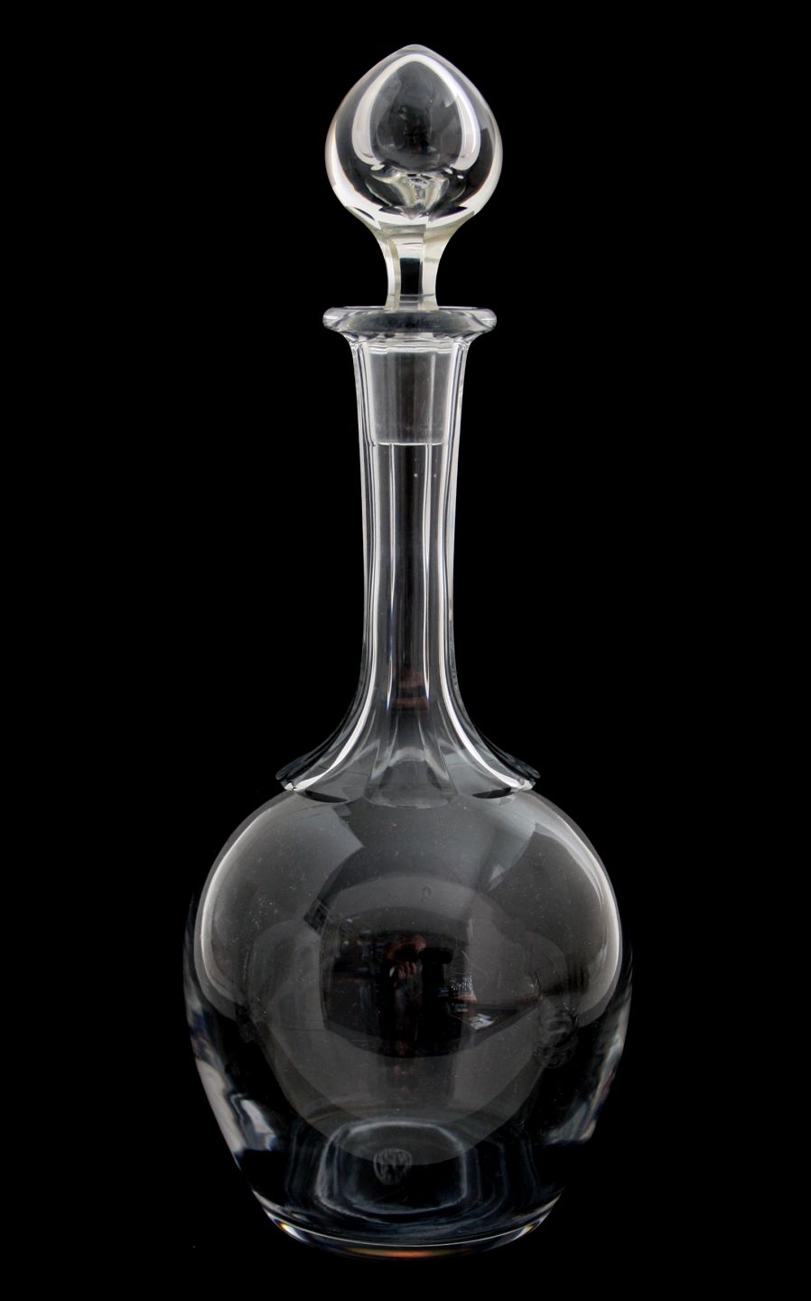 Baccarat, France, Krystalkaraffel. Signeret Baccarat France. Højde med prop 30 cm. Facetslebet hals. Proppen er hul. Kalkrand i bund. Pris: 575 kr.