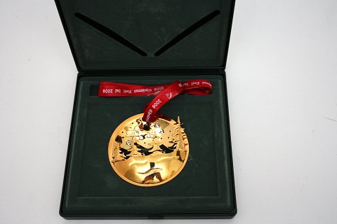 Georg Jensen, Juleuro 2008 Julerose designet af kunstner Regitze Overgaard. Juleuroen er udført i messing belagt med 24 karat guld. Originalt rødt silkebånd og gaveæske medfølger. Pæn og velholdt stand. Pris: 500 kr. stk. Lager: 1