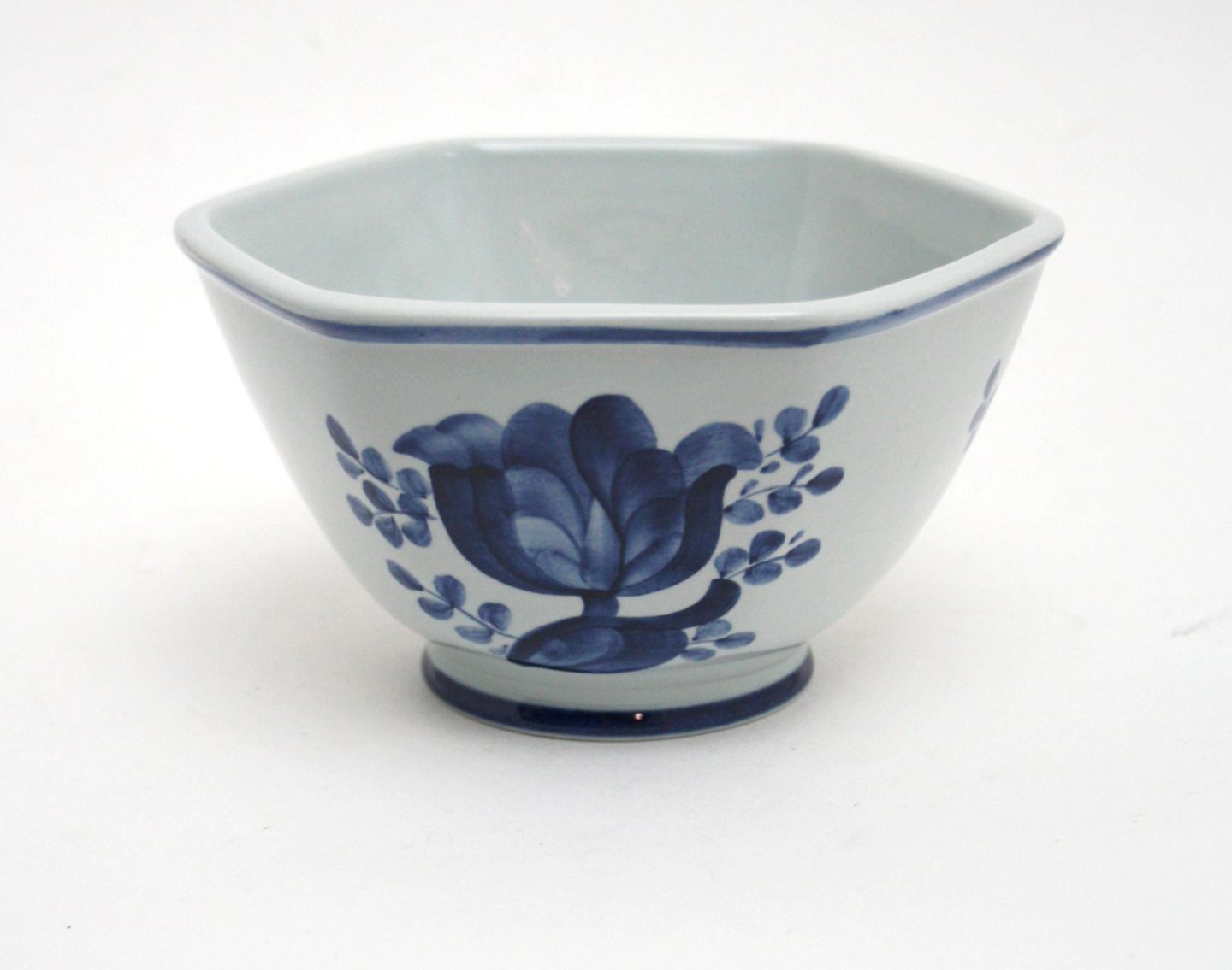 Sekskantet skål. Dekorationsnr. 11/1246. 14 x 15 cm. Højde 8,4 cm. Pris: SOLGT
