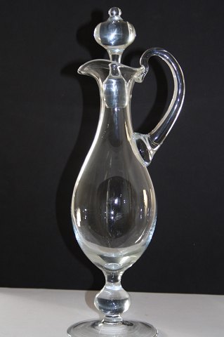 Nr. 4. Karaffel med rigel på hals. Proppen er luft tom. Båndslibning på midten. Højde 25 cm. Pris: 375 kr.