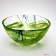 Kosta Boda, Contrast skåle i grøn grundfarve med blå, grønne og hvide striber. Designet af Anna Ehrner.