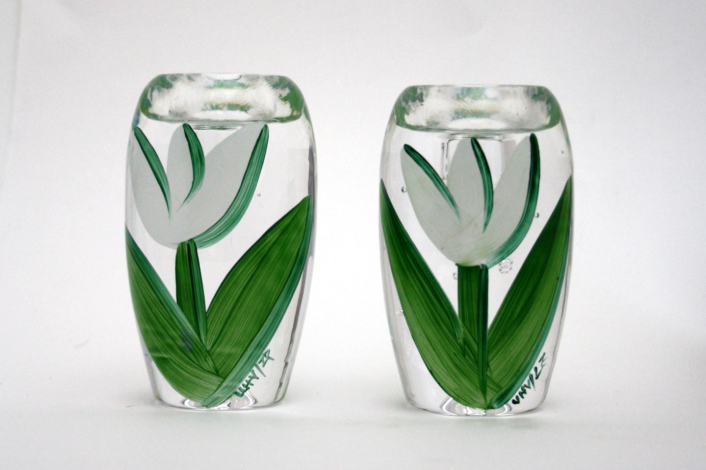 Lysestager, Tulipa, Kosta Boda højde 12 cm.største diameter 7 cm. designer Ulrica Hydman-Vallien Pris Fin og hel stand.