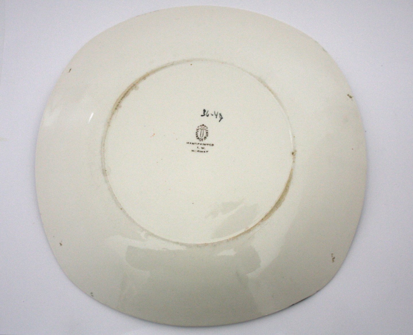 Stavangerflint, Norge, Fad med kvindeansigt, designet af Inger Waage i 1950'erne. Håndmalet. Formnr. 36-49. 28,5 x 28,5 cm. God stand, men med overfladekrakelering og overfladeridser. Pris: SOLGT