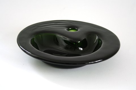 Holmegaard, Blå troldevase, designet af Sidse Werner. Højde 10,5 cm. Diameter 13,5 cm. Ikke signeret. Pris: 300 kr