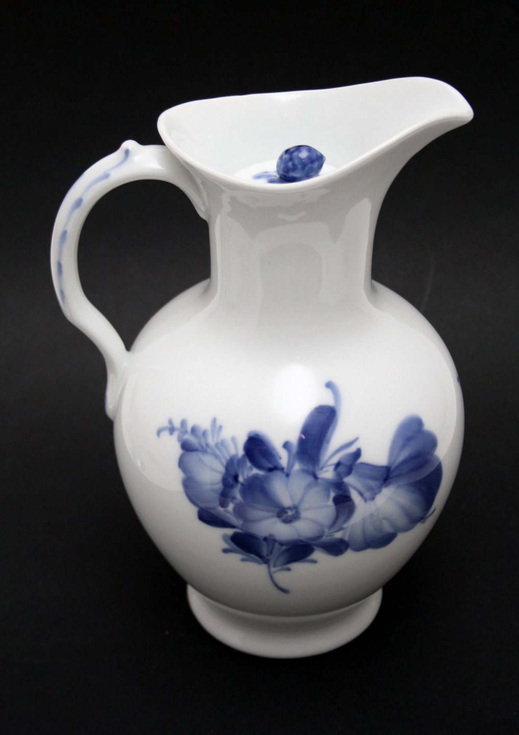 Royal Copenhagen, Blå Blomst flettet, Chokoladekande med låg. Nr. 10/8147. Højde 22,5 cm. II. sortering. Flot stand med malerplet på låg. ARKIV foto. Pris: 550