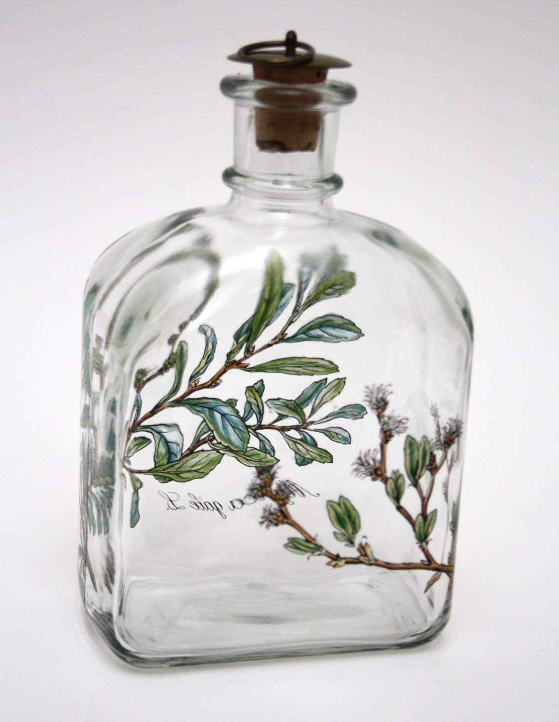 Holmegaard, Brændevinsamatøren, Mose Porse motiv, Myrica gale L. Designer Michael Bang. Højde 16 cm. Sjælden. Pris: SOLGT