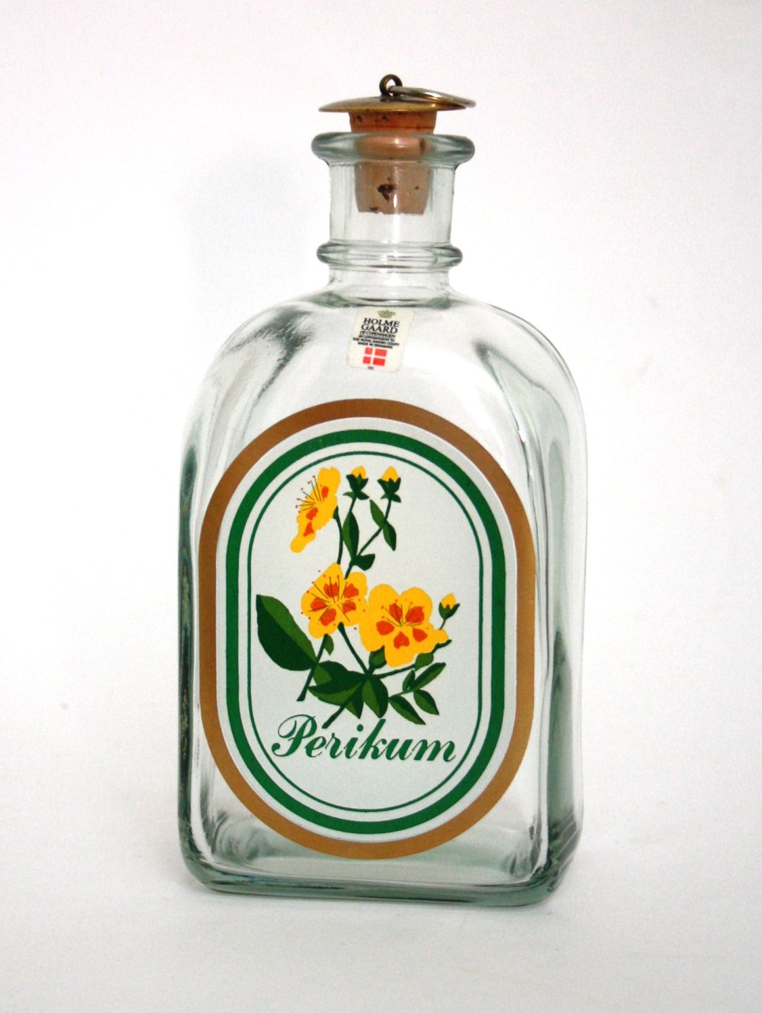 Holmegaard, kantineflaske med Perikum påtrykt. Højde 19,5 cm. Pris: SOLGT
