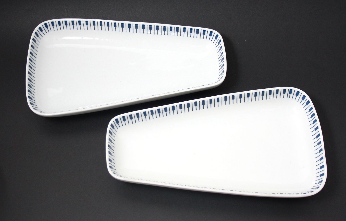 Lyngby porcelæn, Dan-ild 64, Tangent. Designet af Bent Severin i 1963. Lanceret under sloganet fra ild til bord. Asymetrisk fad. Højde 3 cm. Længde 24 cm. Bredde 13,5 + 7,5 cm. God stand. Pris: SOLGT