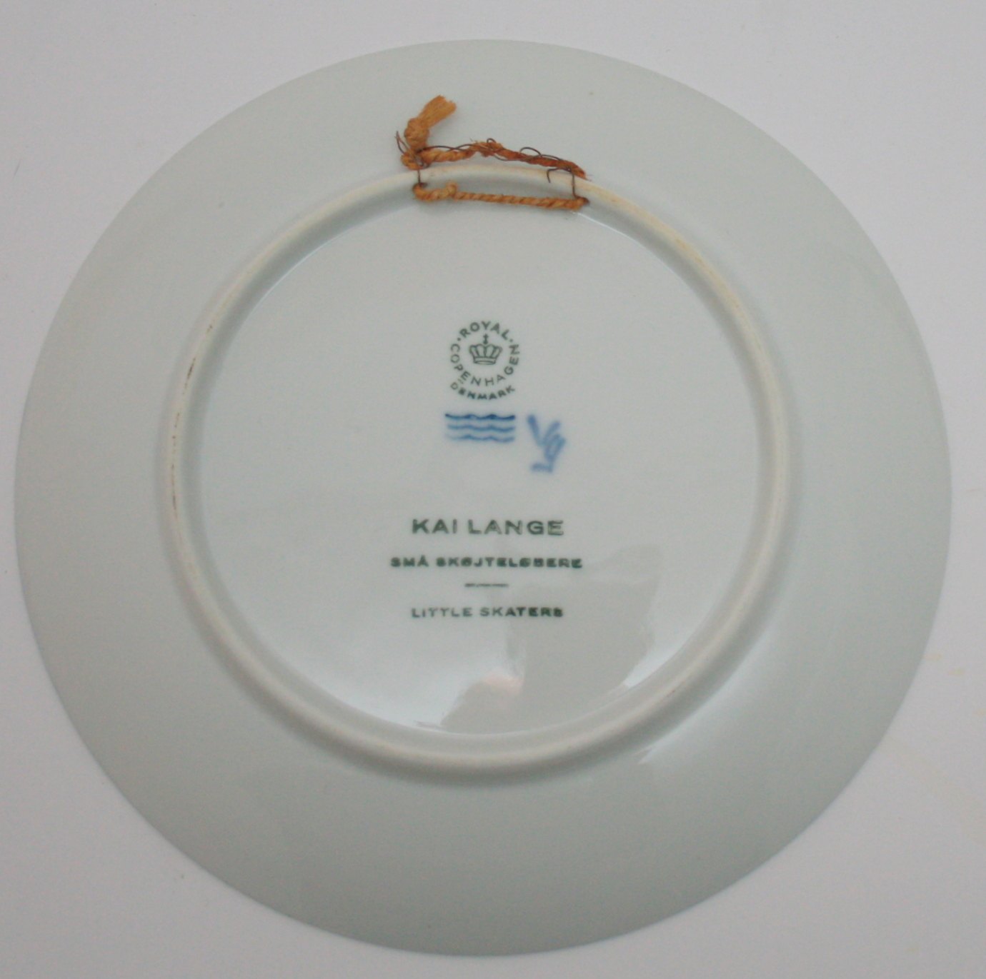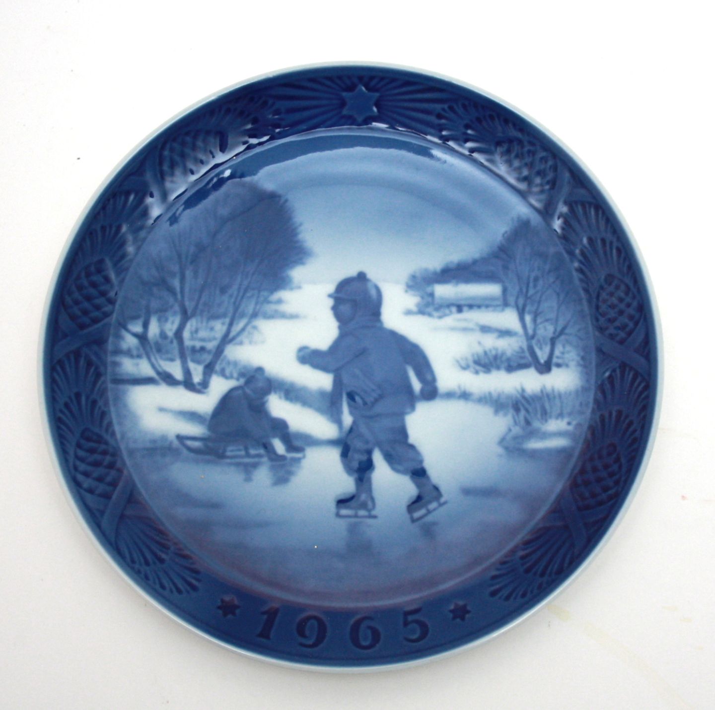 Royal Copenhagen, Juleplatten 1965 "Små skøjteløbere" af Kaj Lange. Diameter 18 cm. 1. sortering. Pris: 150 kr.
