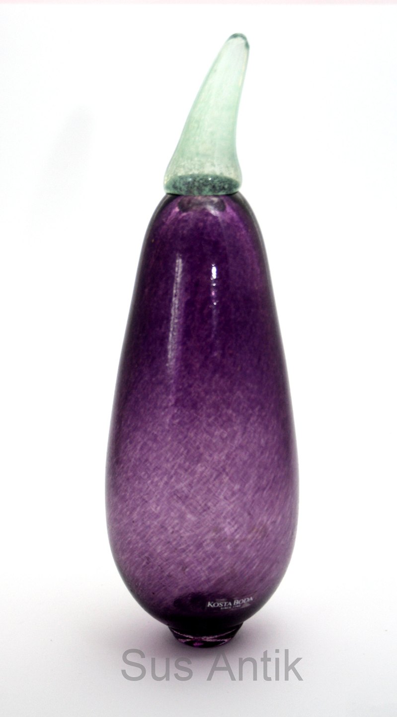 Kosta Boda, Sweden, Frutteria, Glasfrugter designet af Gunnel Sahlin i 1990'erne. Aubergine. Længde 24 cm. Pris: 375 kr.