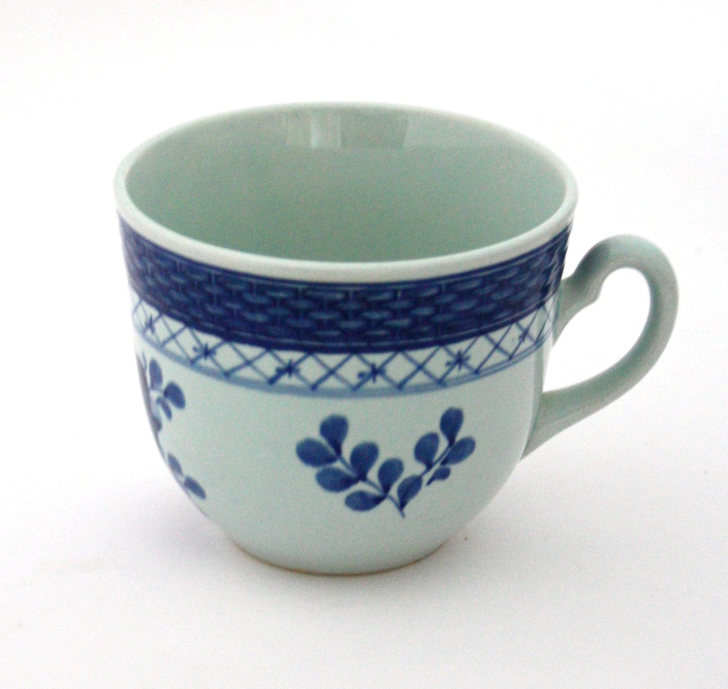 Royal Copenhagen, Tranquebar lyseblå fajance med mørkeblå tulipan og flettet bort designet af Christian Joachim. Produceret fra 1914 til 1969 på Aluminia derefter videreført hos Royal Copenhagen.
