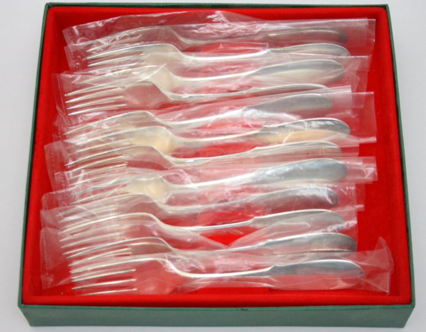 Georg Jensen, Mitra blank stålbestik. Frokostgaffel. Længde 17,5 cm. Pris: 100 kr. stk. Lager: 12 Ved køb af alle 12 i æske. Pris: 1.000 kr.