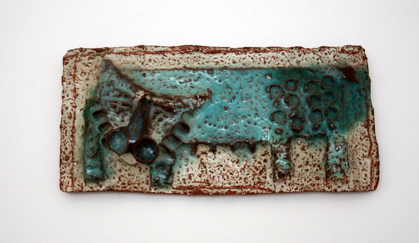 Birgit Krogh, Nykøbing Sj. Relief med turkisblå kat.