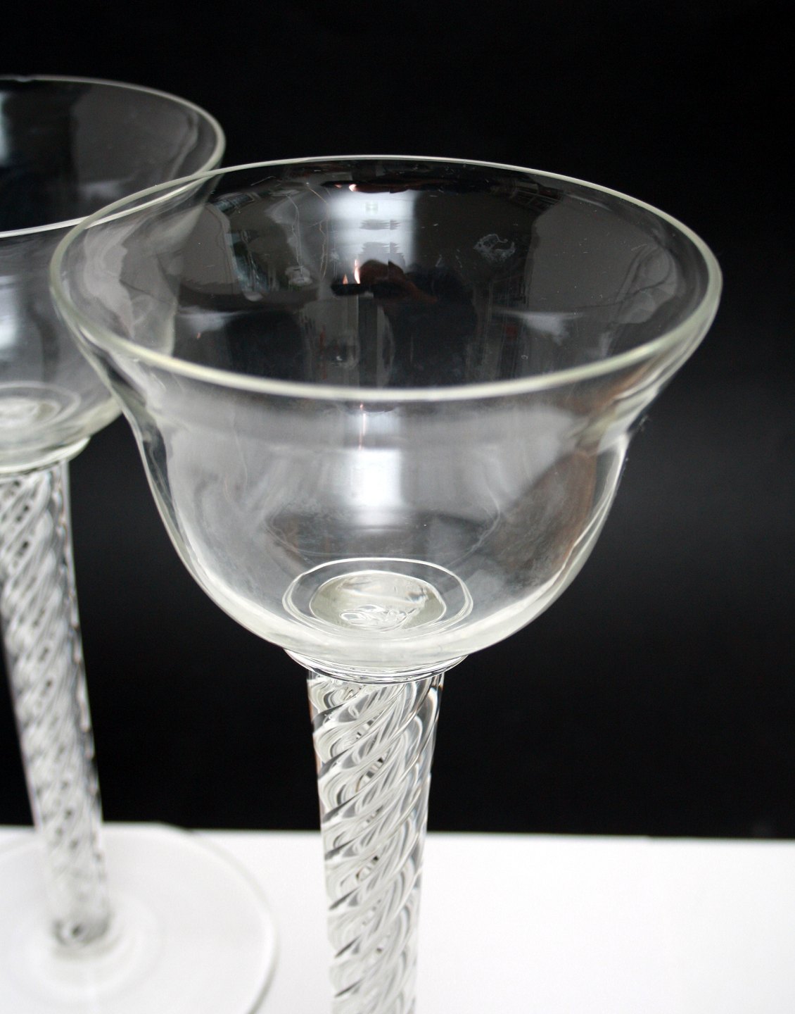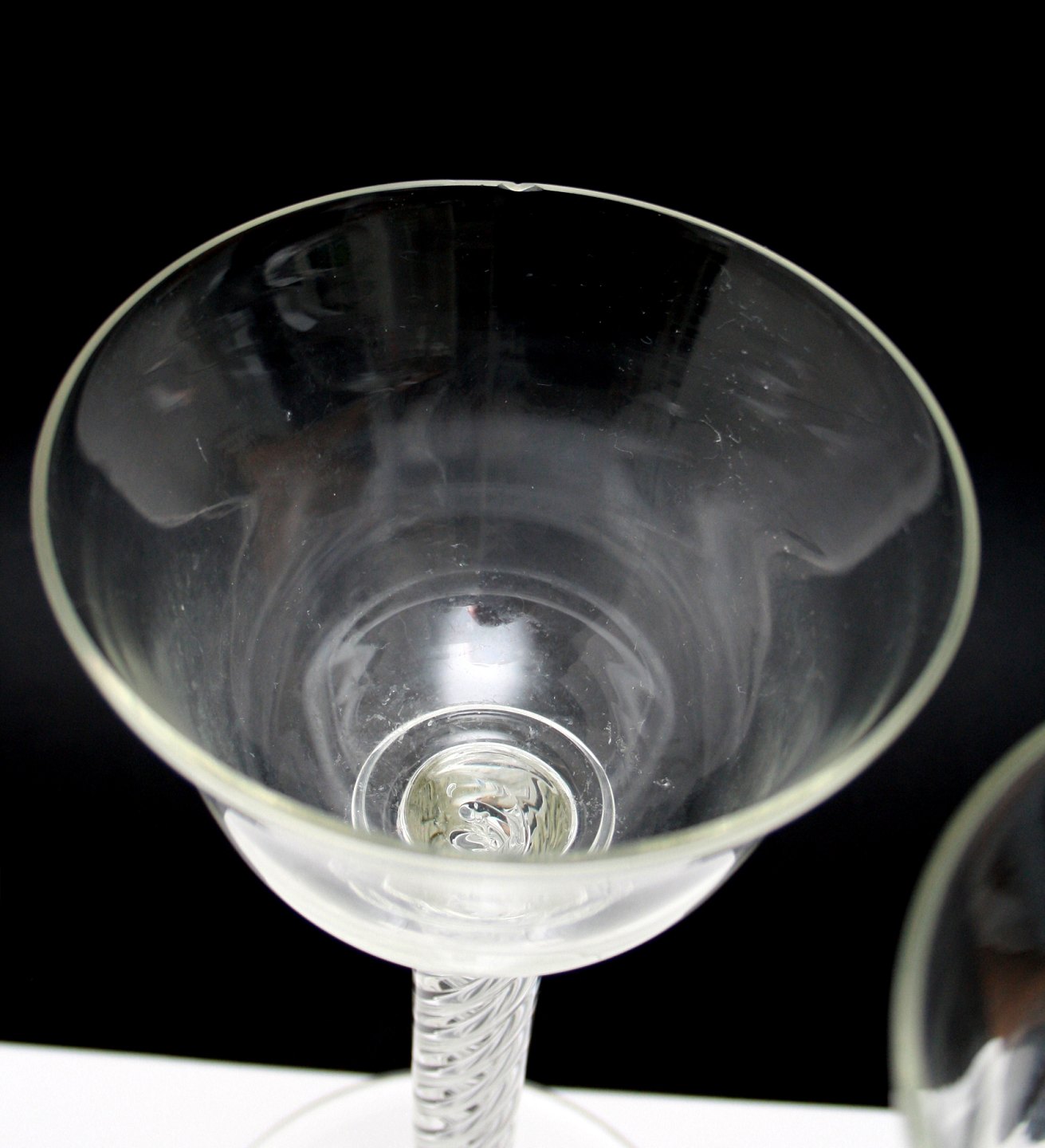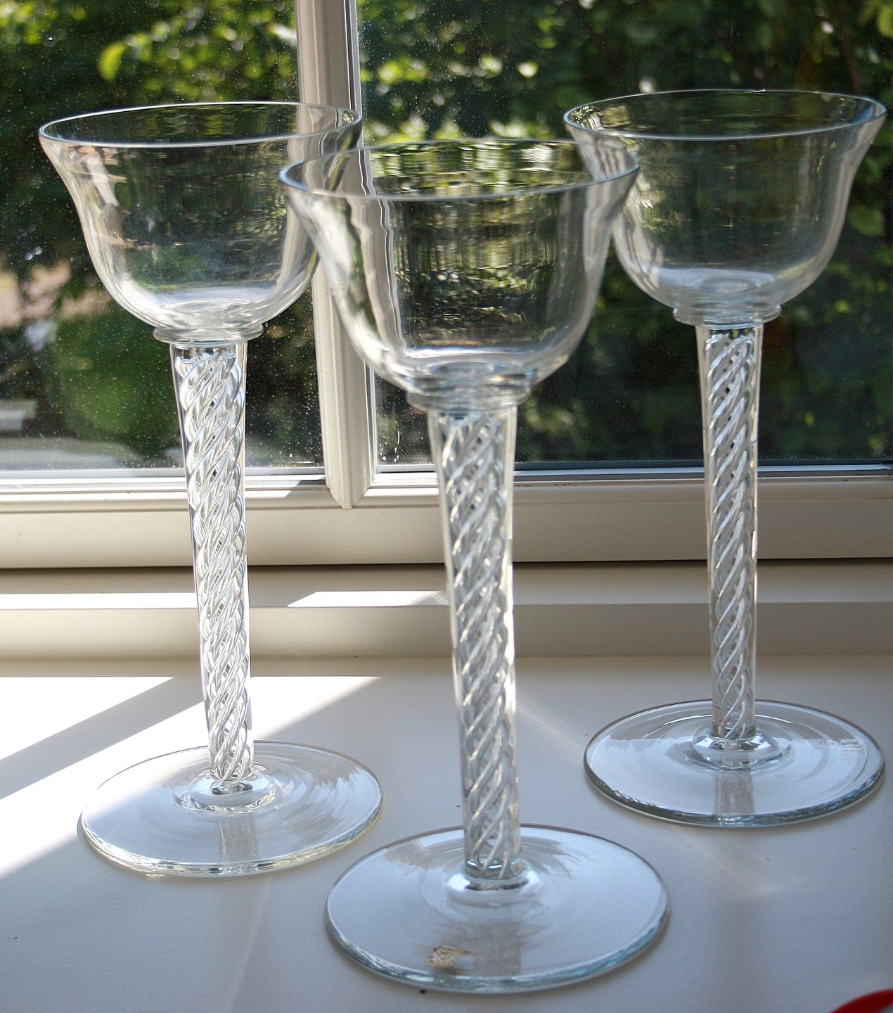 Krufs Glasbruk, Sweden, Blomster glasopsats med indvendig snoning 30 cm. Pris: 400 kr. 31 har lidt skygge i kummen. Pris: 300 kr. 30 cm. med afslag. Pris: 200 kr.