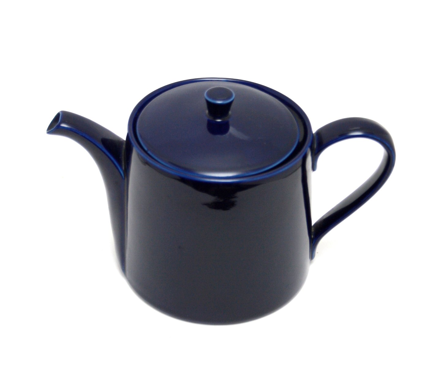 Lyngby Dan-ild med glasurfarver, blå 2600. Design Axel Brüel i 1958. Tekande med låg. Højde 14,5 cm. Længde 23,5 cm. Pris: SOLGT