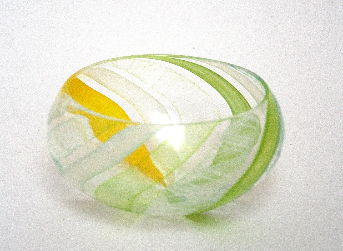 Glassmedjen Hundested, let glasskål designet af Nanna Backhaus Brown. Signeret Nanna Backhaus 1998. Diameter ca. 16 cm. Højde 6,5 cm. Pris: SOLGT