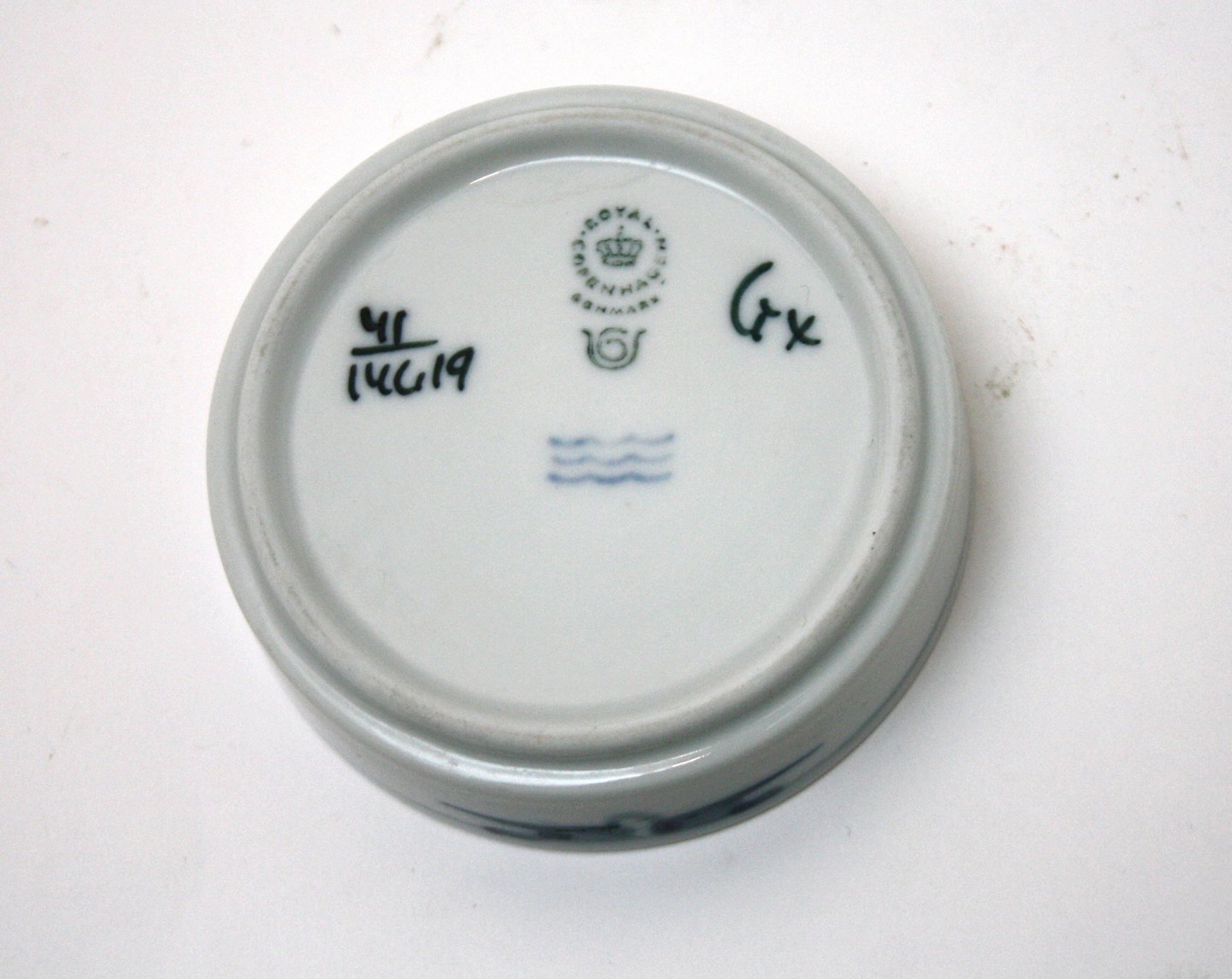 Flaskebakke/assiet. I. sortering. Dek.nr. 41/14619. Højde 2 cm. Diameter 8 cm. Pris: 100 kr. stk. Lager: 3