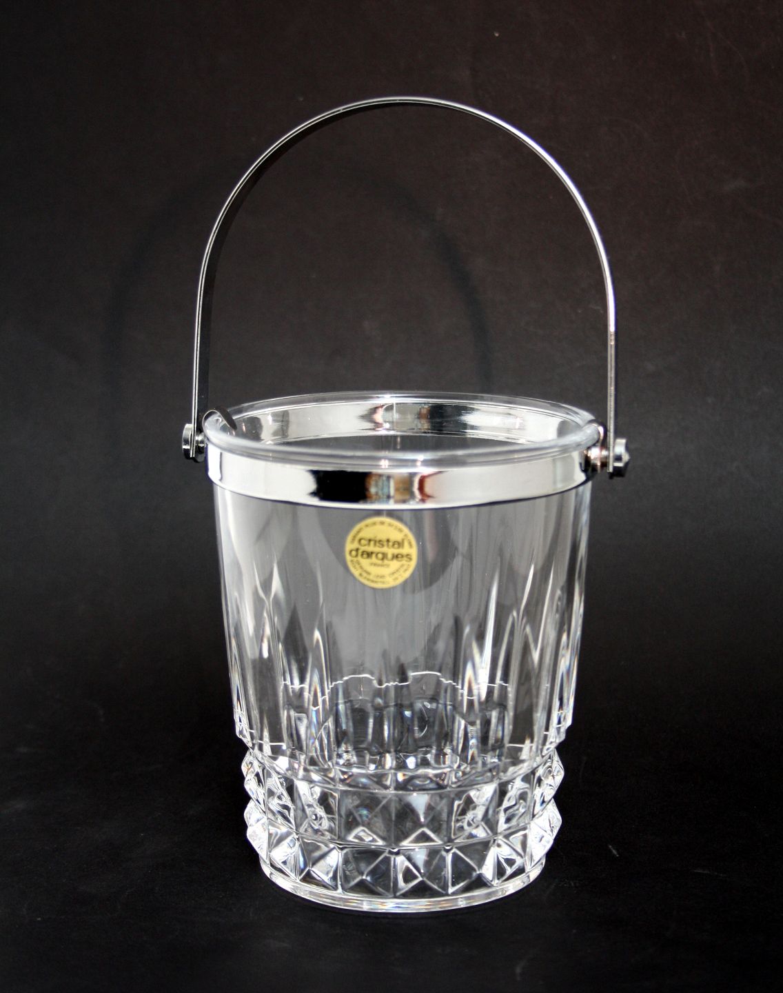 Cristal D'Arques, Frankrig, Isspand 24 % blykrystal med Pompadour slibning. Højde uden hank 13,5 cm. Diameter 11,3 cm. Pris: SOLGT