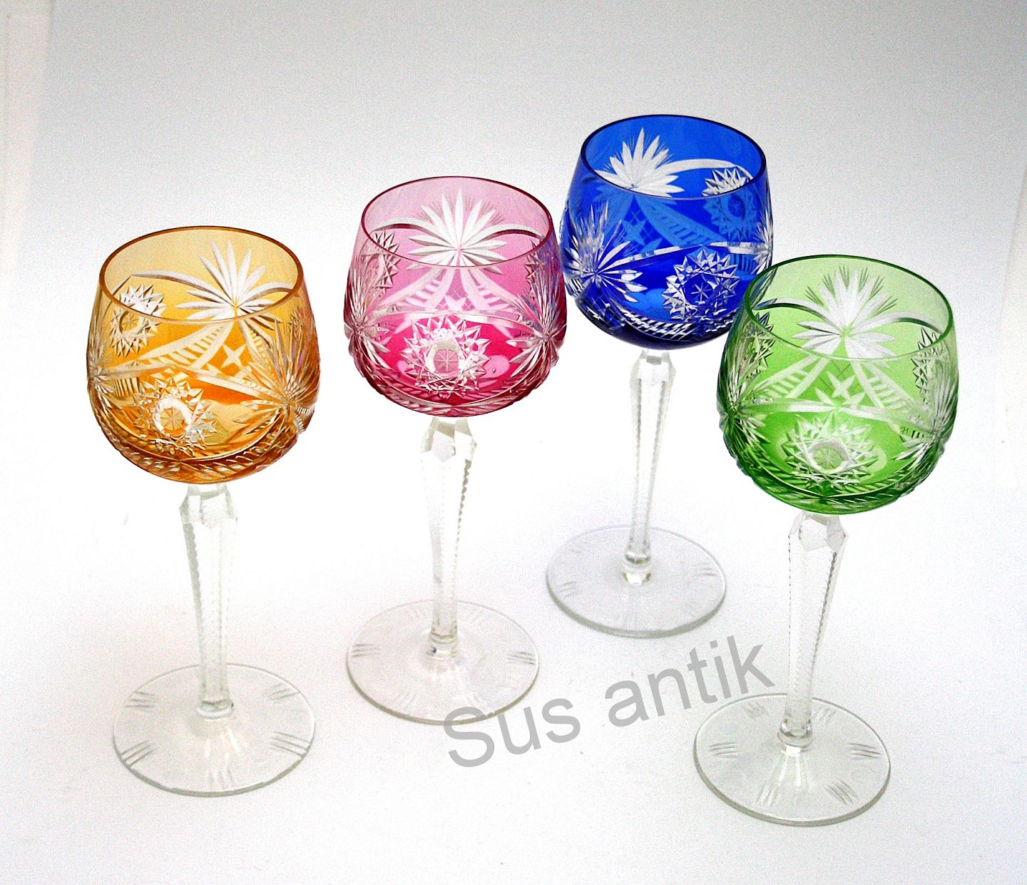 Bøhmisk krystalglas i sarte farver med slebet kumme, stilk og fod. B-7-21. Højde 18,5 cm. Pris: SOLGT Orange. Lager: 0 Rosa. Lager: 0 Blå. Lager: 0 Grøn. Lager: 0