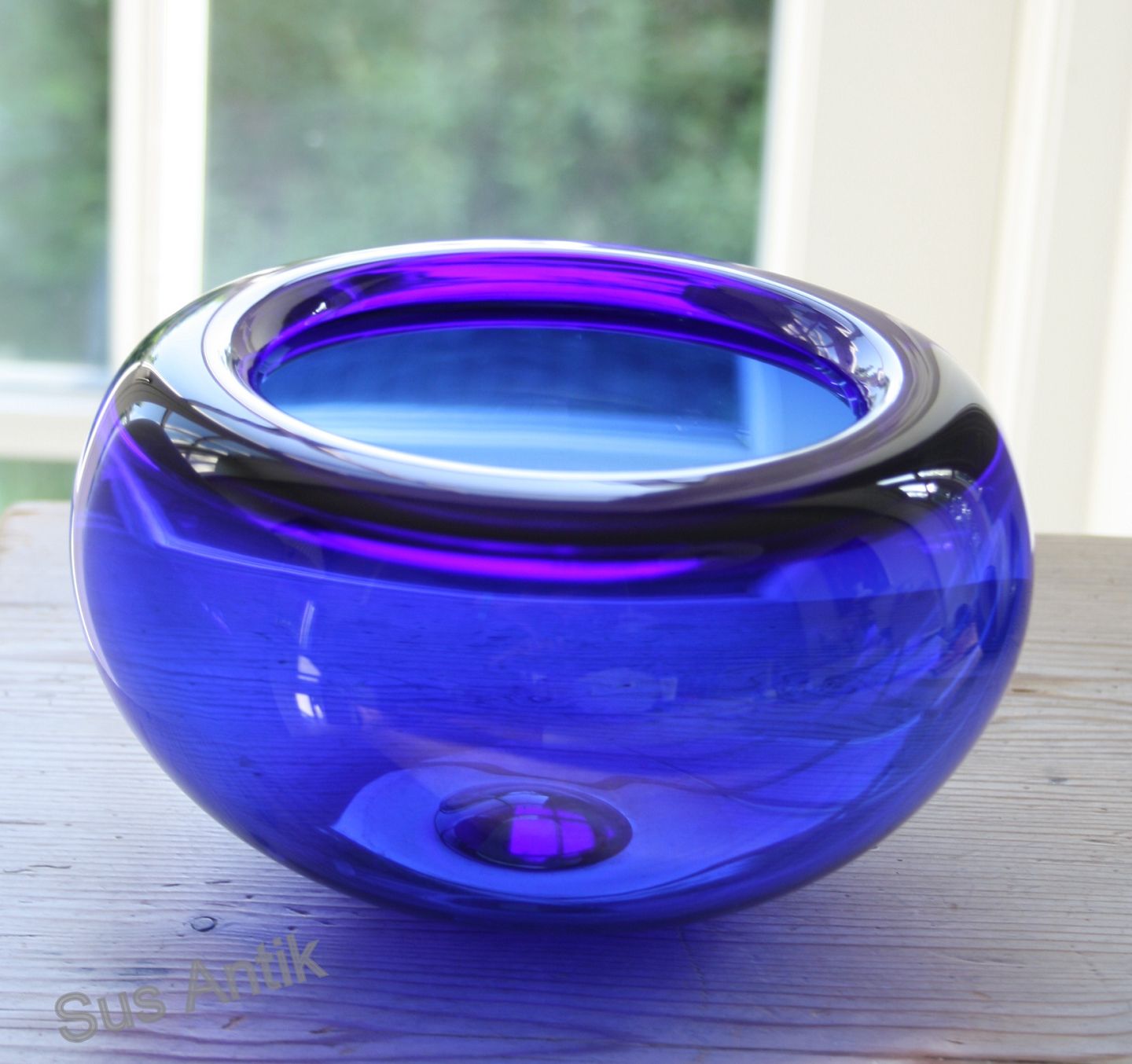 Holmegaard, Provence skål i blåt glas. Designet af Per Lütken i 1955 og produceret lige siden. Diameter 18 cm. Højde 11 cm. Fin stand. Pris: SOLGT