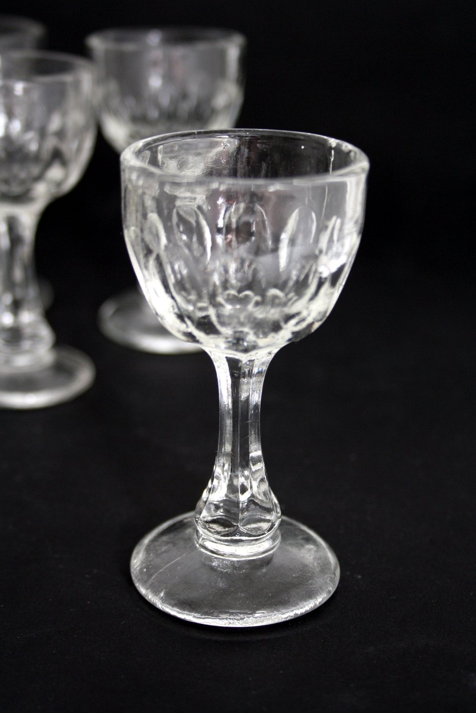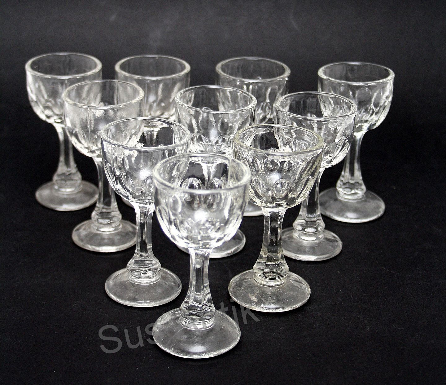 Fyens Glasværk, presset snapseglas som kopi af Derby krystalglas. Fra katalogerne 1914 til 1934. Højde 9 cm. Diameter 4,5 cm. Sælges samlet. Pris: 10 stk. 400 kr.