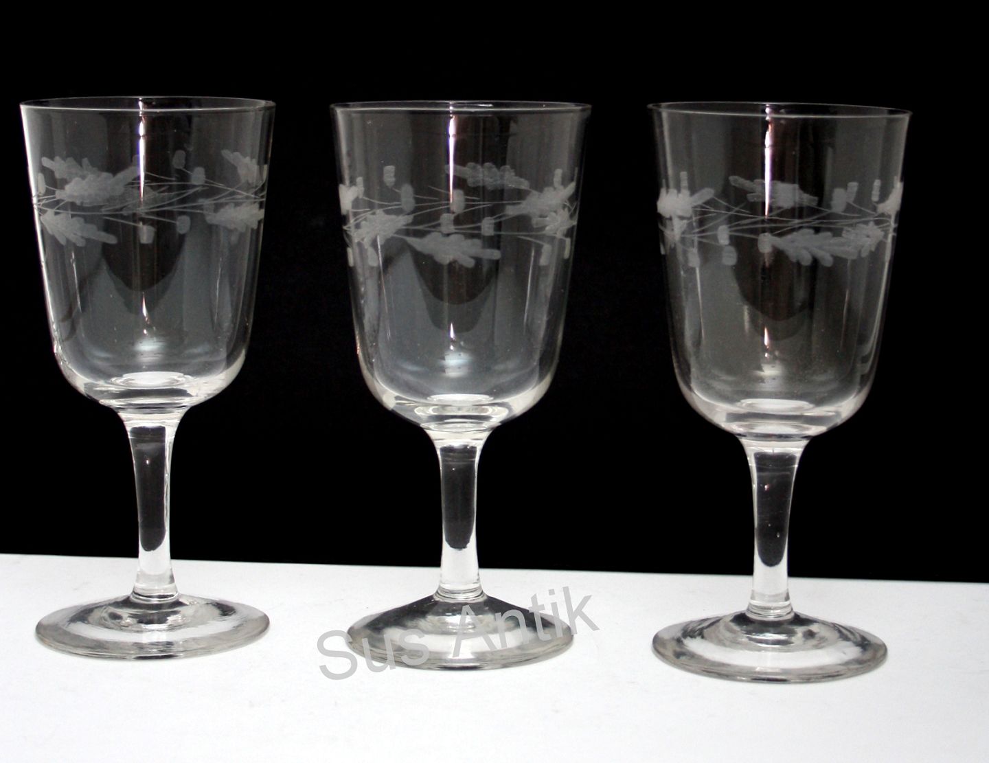 Figaro vinglas med Holmegaard egeløv slibning. Højde 15,5 cm. Øverste diameter 7,5 cm. Små ujævnheder i kummekanten. Pris: SOLGT