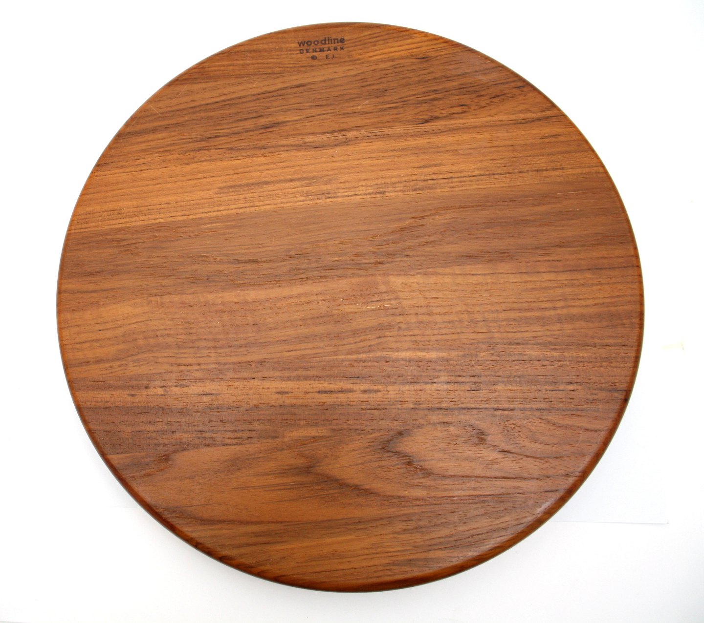 Woodline, Rund teaktræ bakke designet af Erik Jørgensen i 1960'erne. Mærke Woodline, Denmark, EJ. Diameter 34,5 cm. Pris:SOLGT