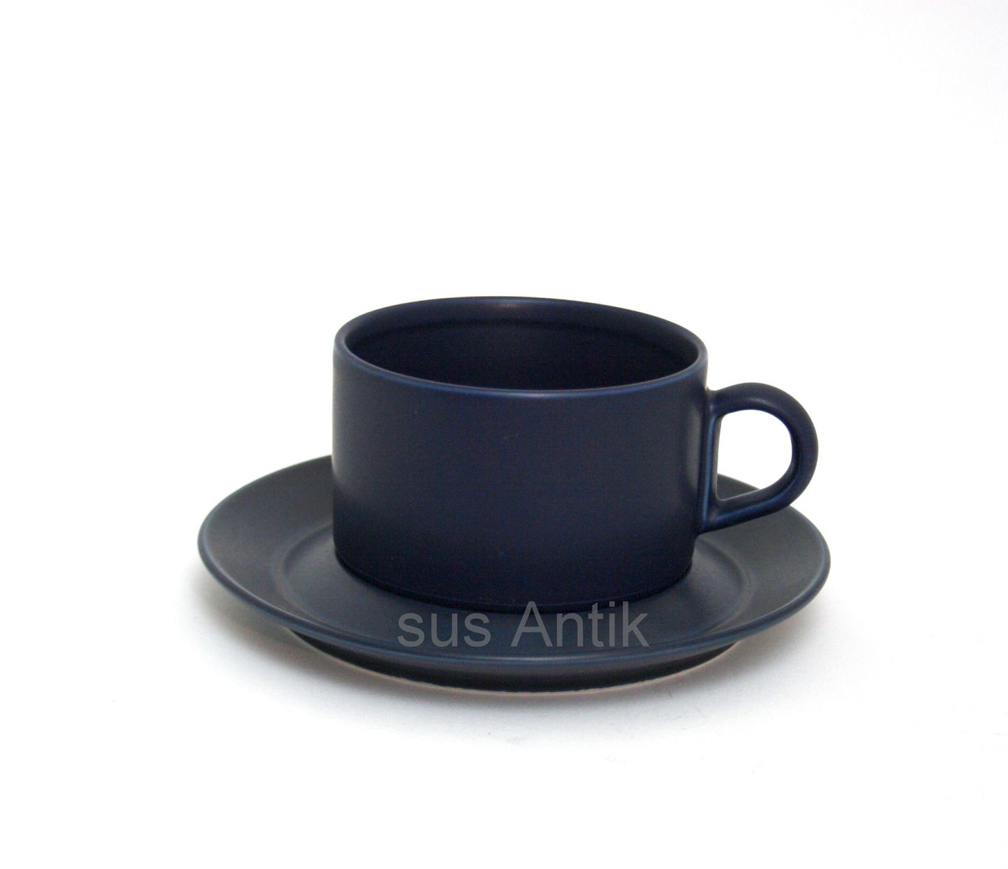 Arabia, Blues, Tekop. Designet af Heikki Orvola i 1992 og produceret frem til 1998. Stellet er i en mat, mørk navy blue glasur. Det er owen, dishwasher and freezer proof. Tekop. Højde 5,8 cm. Diameter 7 cm. Underkop diameter 16 cm. Pris: SOLGT