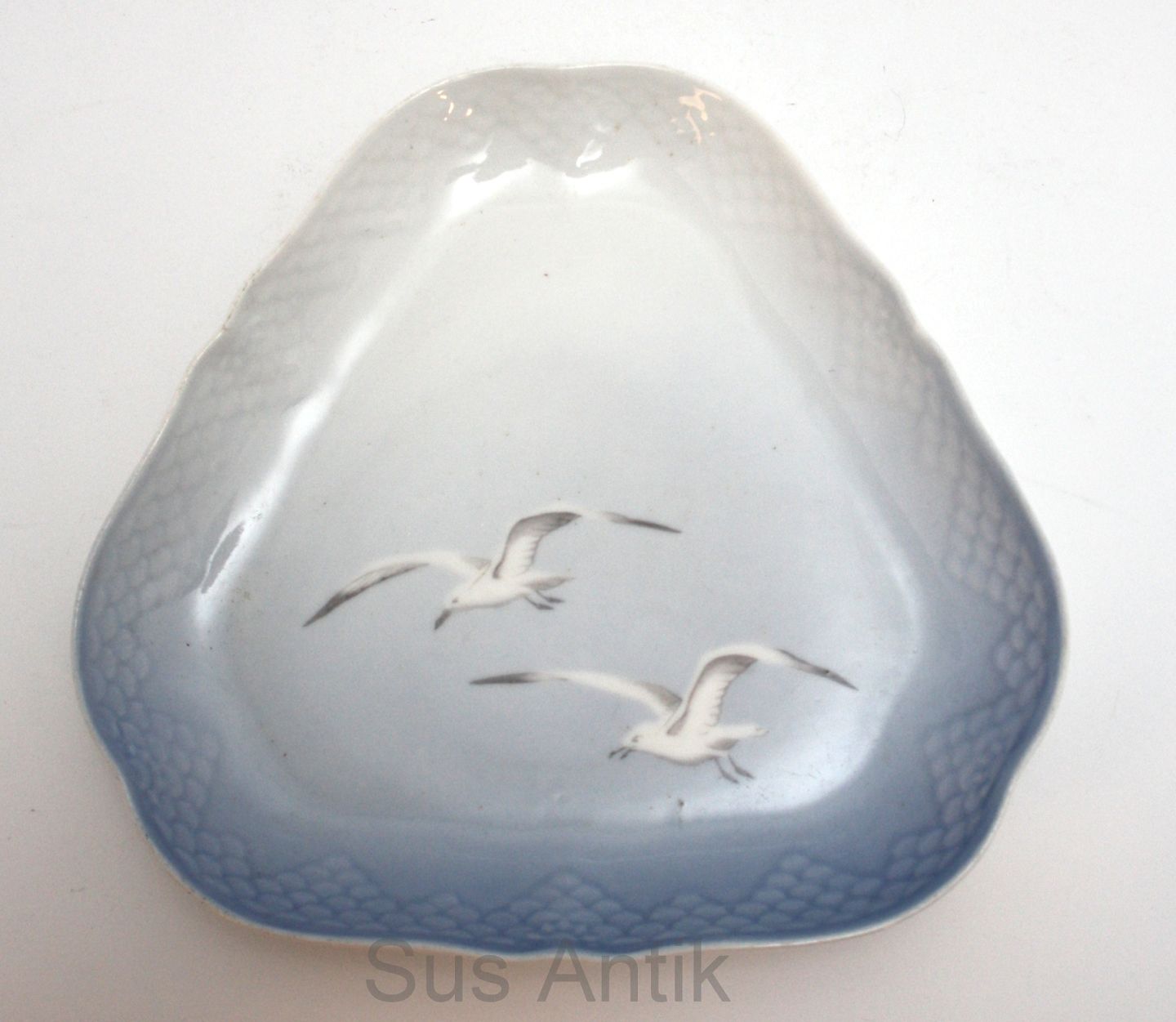 Bing & Grøndahl, Måge uden guld, Trekantet fad. Nr. 40. Længde 24,5 cm. II. sortering. Pris: 250 kr. stk. Lager: 1