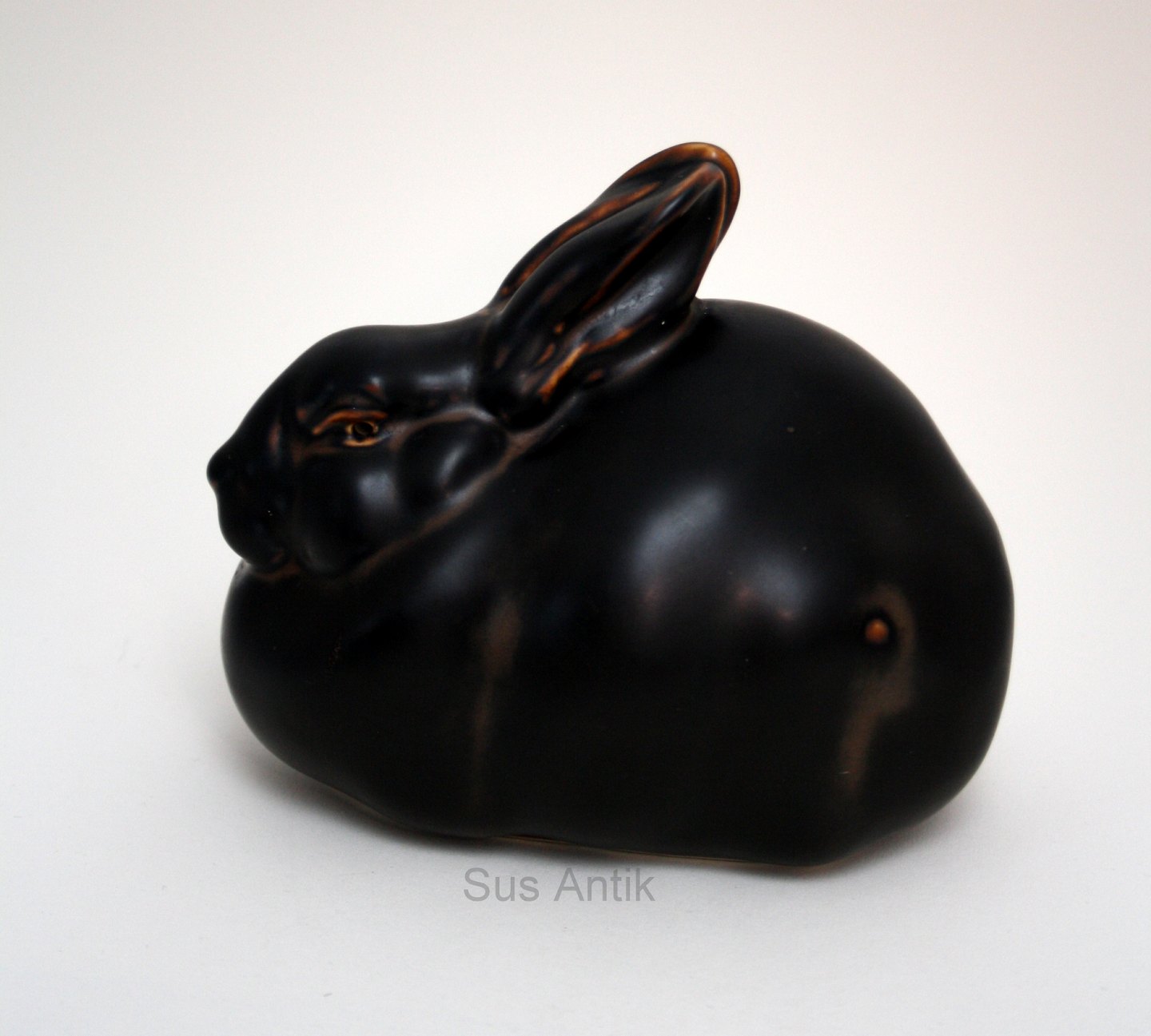 Royal Copenhagen, stoneware i brun glasur. Kanin liggende stor formgivet af Jeanne Grut. Nr. 22695. II. sortering. Pris: SOLGT