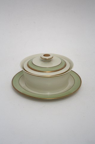 Royal Copenhagen, Broager. Cremet stel med lysegrøn bort og guldkanter. Flødekande. Højde 9 cm. Diameter 7,5 cm. Nr. 9480. II. sortering. Pris: 150 kr. stk. Lager: 1