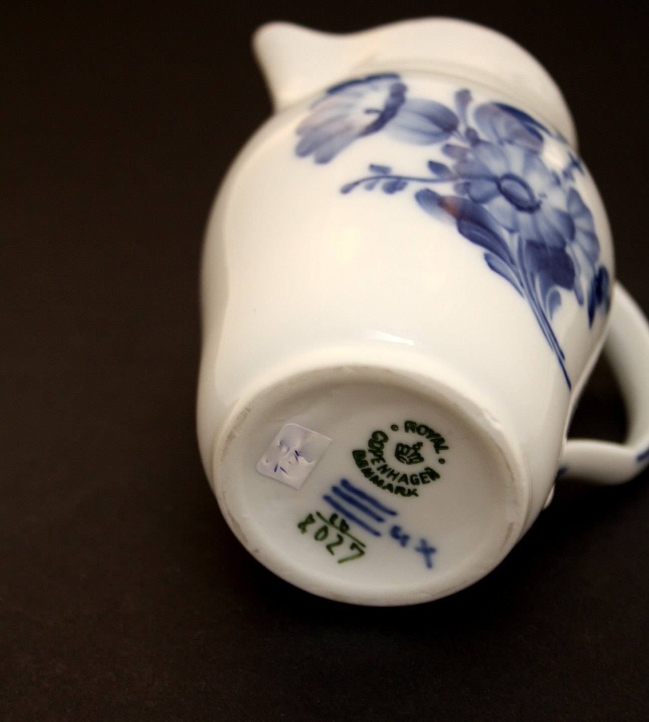Royal Copenhagen, Blå Blomst flettet, Flødekande mellemstørrelse. Nr. 10/8027. Højde 11.5 cm. I. sortering, men har en produktionsfejl afslag på kanten i bund. Pris: SOLGT